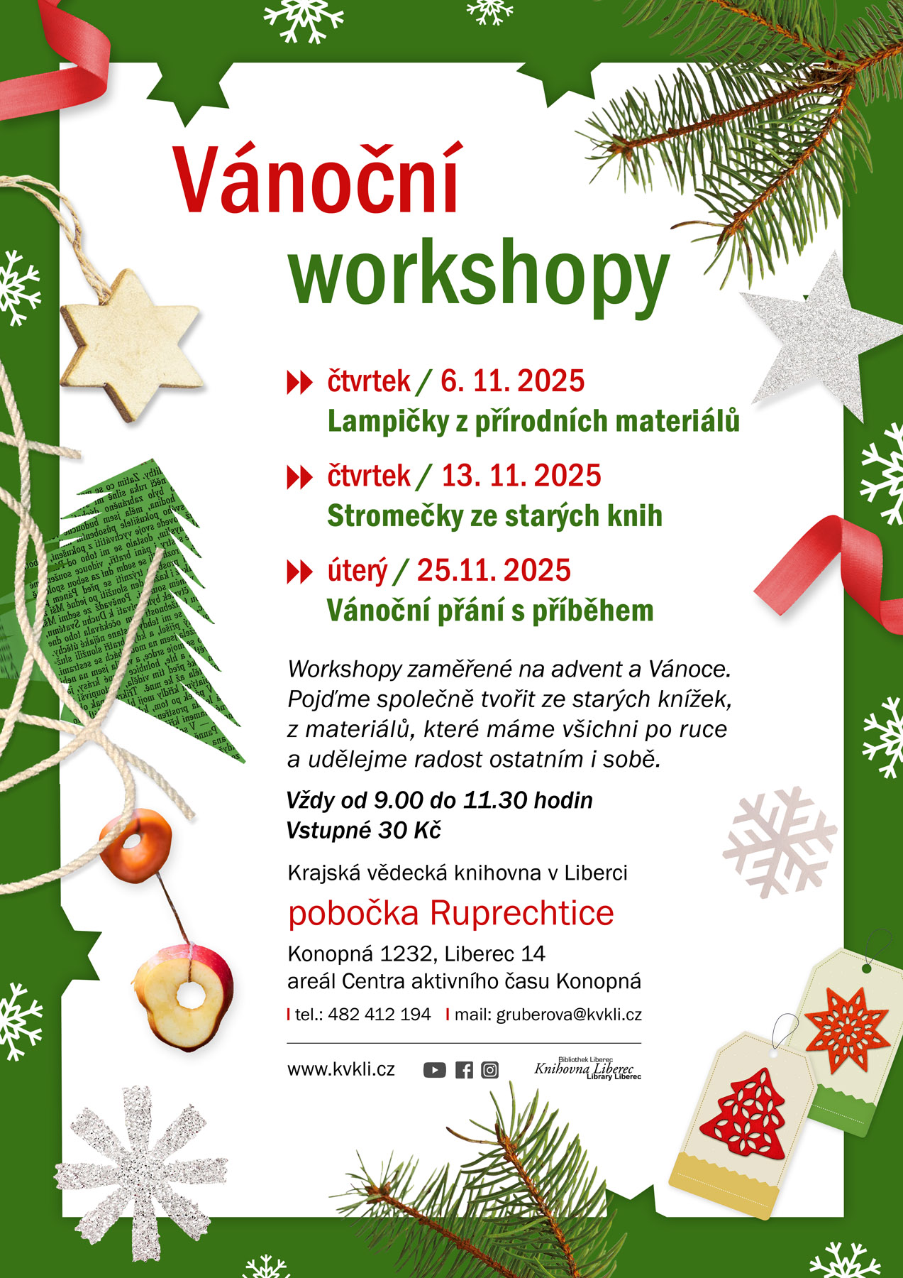 Workshopy zaměřené na advent a Vánoce. Pojďme společně tvořit ze starých knížek, z materiálů, které máme všichni po ruce a udělejme radost ostatním i sobě.