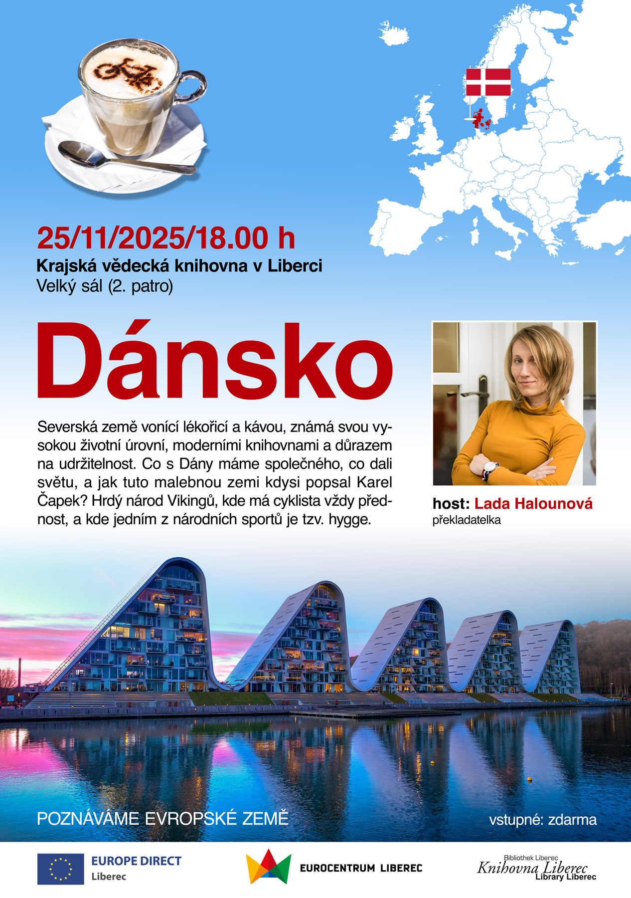 Severská země vonící lékořicí a kávou, známá svou vysokou životní úrovní, moderními knihovnami a důrazem na udržitelnost. Co s Dány máme společného, co dali světu, a jak tuto malebnou zemi kdysi popsal Karel Čapek? Hrdý národ Vikingů, kde má cyklista vždy přednost, a kde jedním z ‚národních sportů‘ je tzv. hygge, představí překladatelka z dánštiny Lada Halounová.