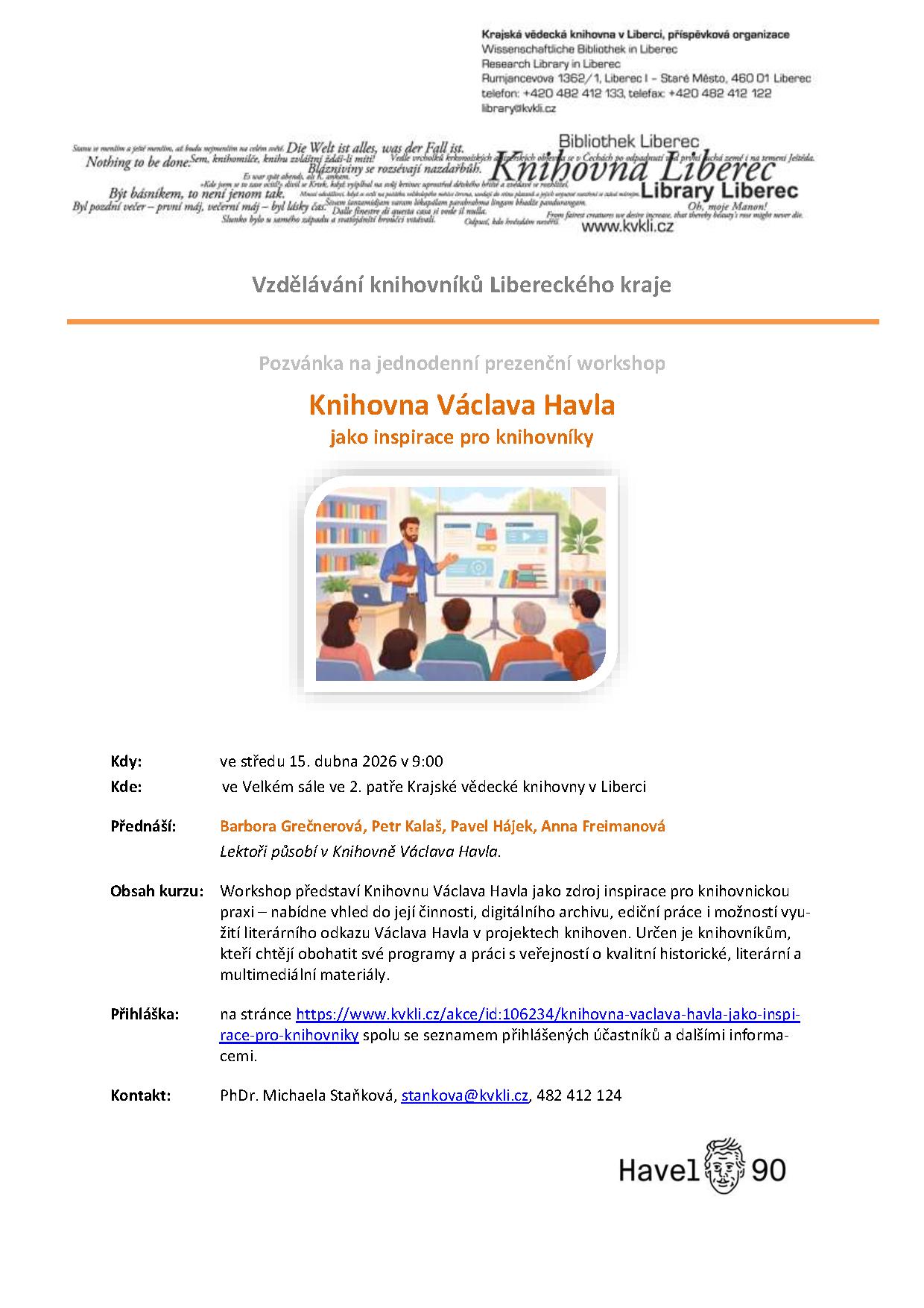 Lektoři: Barbora Grečnerová, Petr Kalaš, Pavel Hájek, Anna Freimanová (Knihovna Václava Havla)