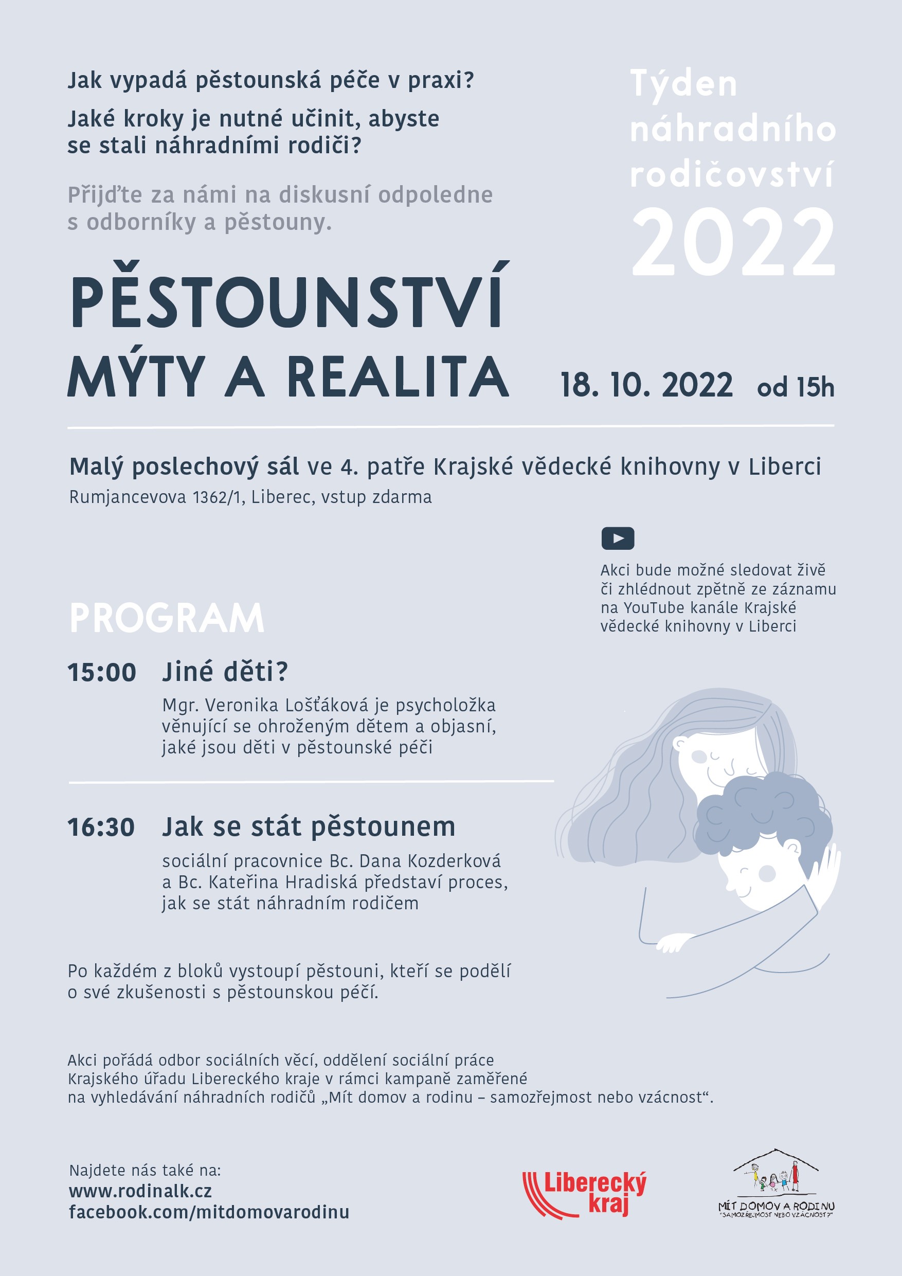 Pořádá: odbor sociálních věcí, oddělení sociální práce Krajského úřadu LK v rámci kampaně zaměřené na vyhledávání náhradních rodičů