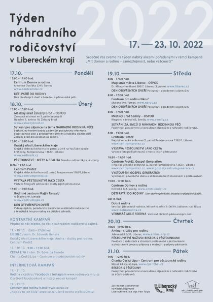 Týden náhradního rodičovství v LK - výběr pořadů