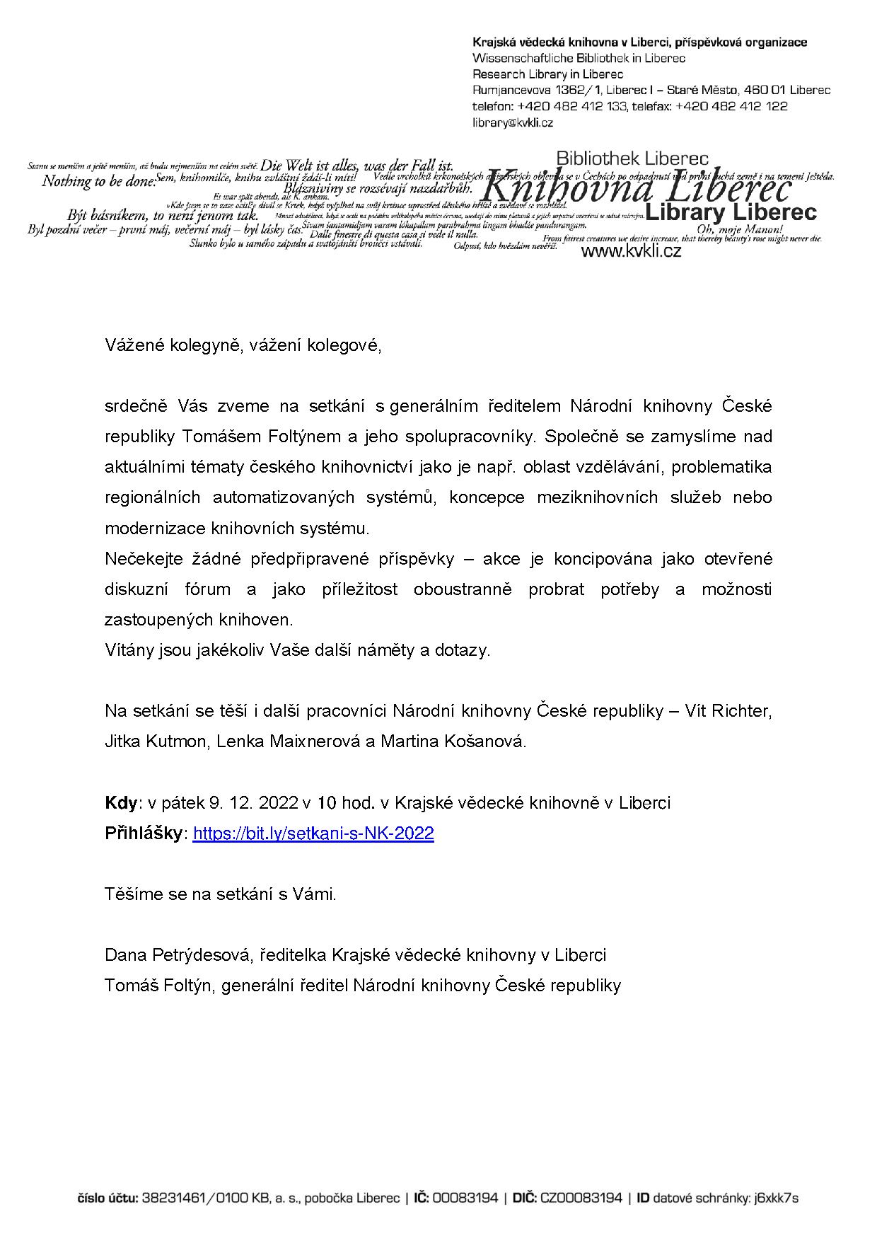 Akce je pořádána Národní knihovnou ČR a Krajskou vědeckou knihovnou v Liberci .