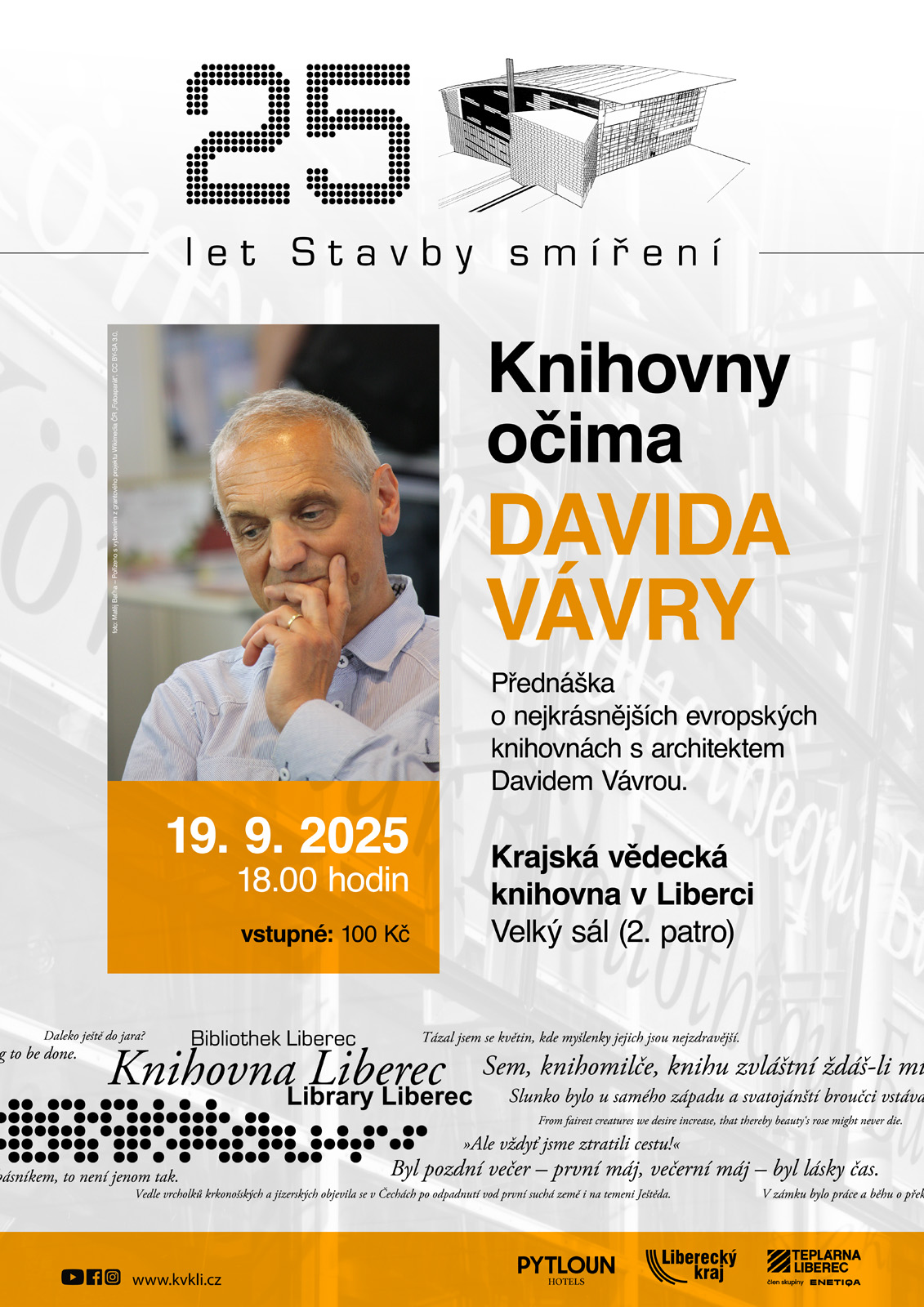 Liberecká knihovna si připomíná 25 let Stavby smíření. Přednáška o nejkrásnějších evropských knihovnách s architektem Davidem Vávrou.