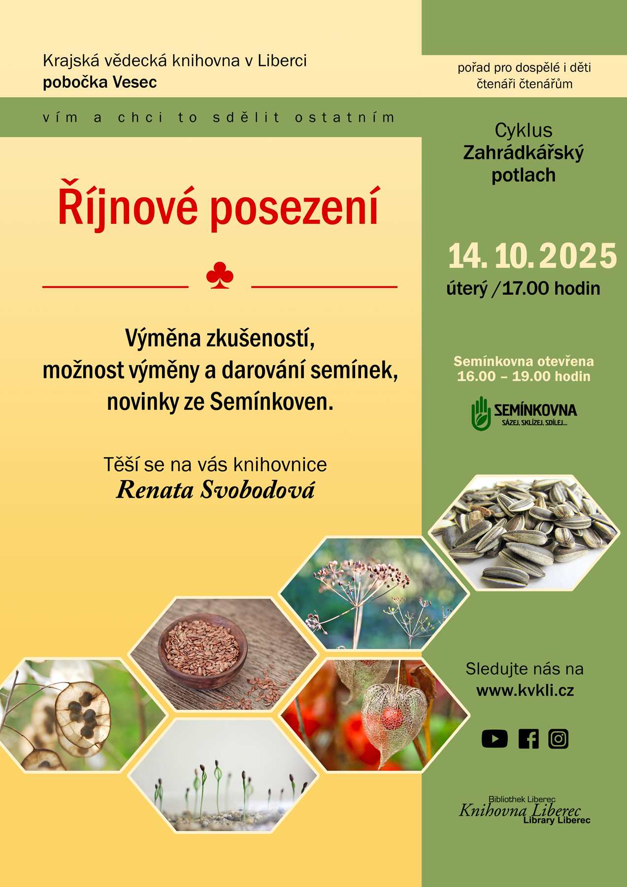 Výměna zkušeností, možnost výměny a darování semínek, novinky ze Semínkoven.