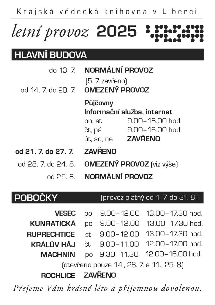 Jen pozor! Naše pobočky mají o letních prázdninách omezenou otevírací dobu. Včas si tedy své cesty naplánujte. Otevírací doby poboček najdete níže v galerii.