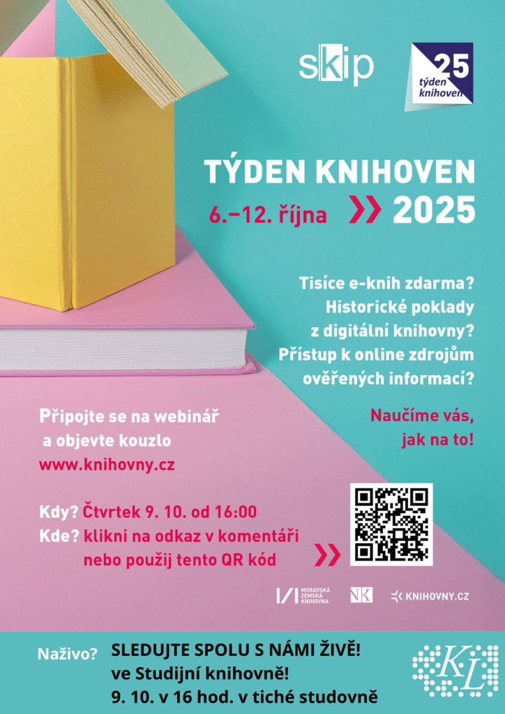 Týden knihoven 2025 je nejen kampaň, je to pozvání do světa možností našich knihoven. Ať už jste čtenář, student, rodič nebo senior a chcete se vzdělávat a rozvíjet či objevovat – objevujte s námi naživo i online. Těšíme se na vás v Krajské vědecké knihovně v Liberci. Jsme tu pro vás!
