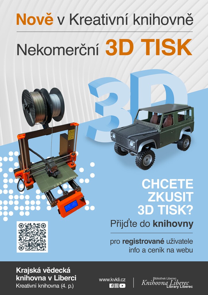 - individuálním zájemcům nabízíme instruktáž k 3D tisku