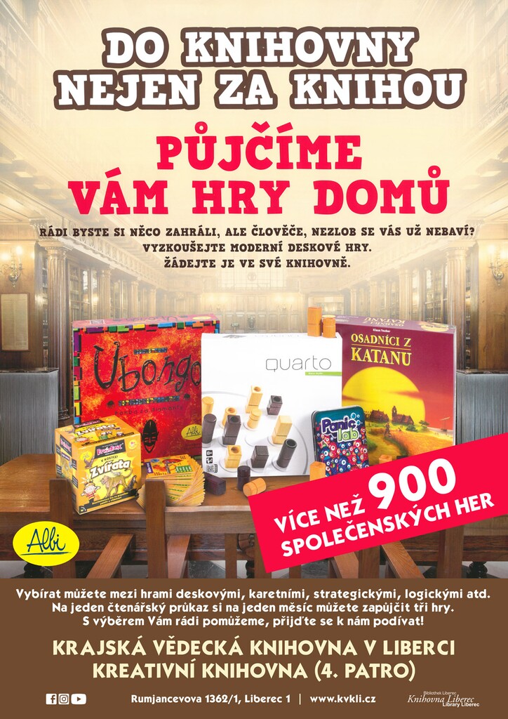 - absenční půjčení deskových her se řídí Knihovním řádem